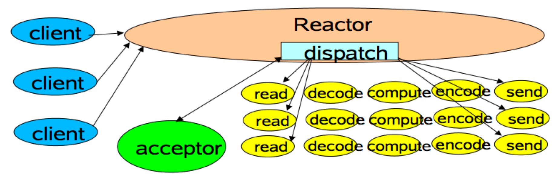 多个客户端会发送请求给到 Reactor。Reactor 有个请求分发线程 Dispatcher,即 Acceptor,它会将不同的请求下发到多个工作线程中处理。
