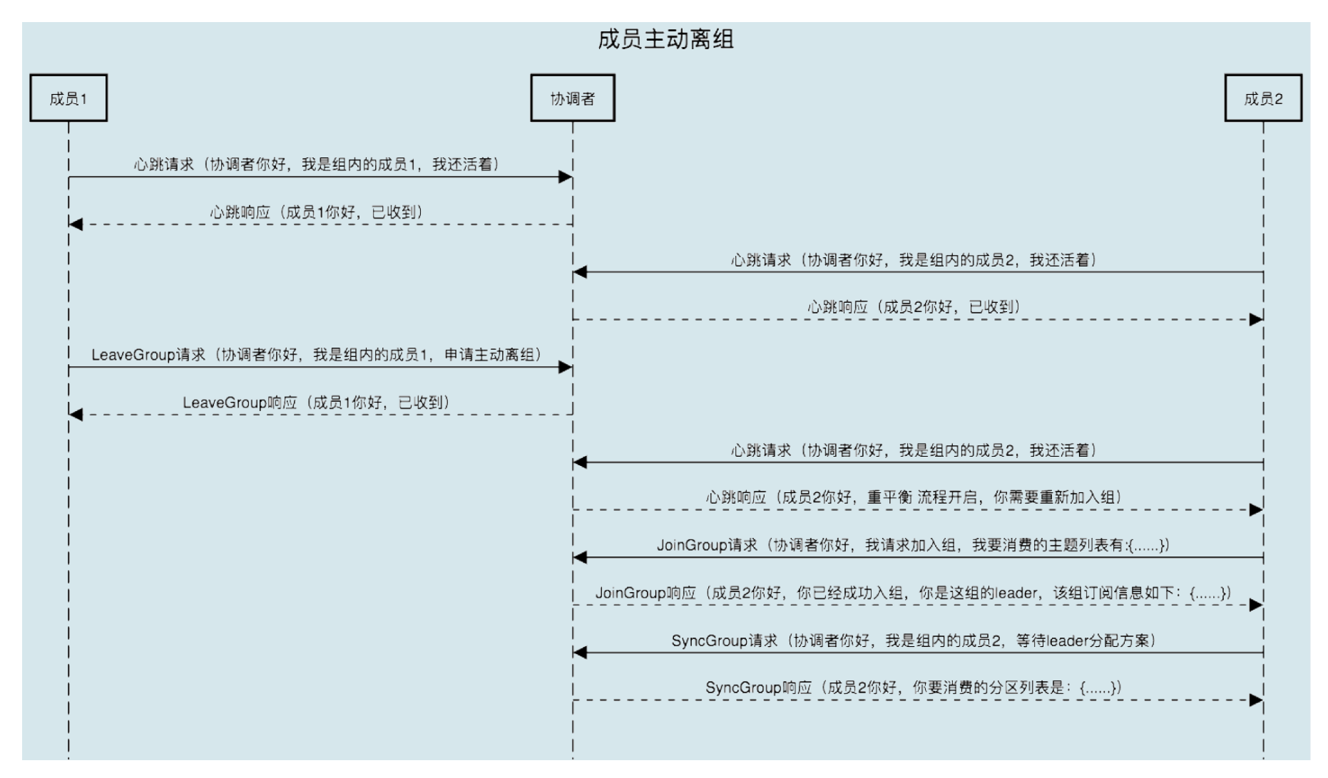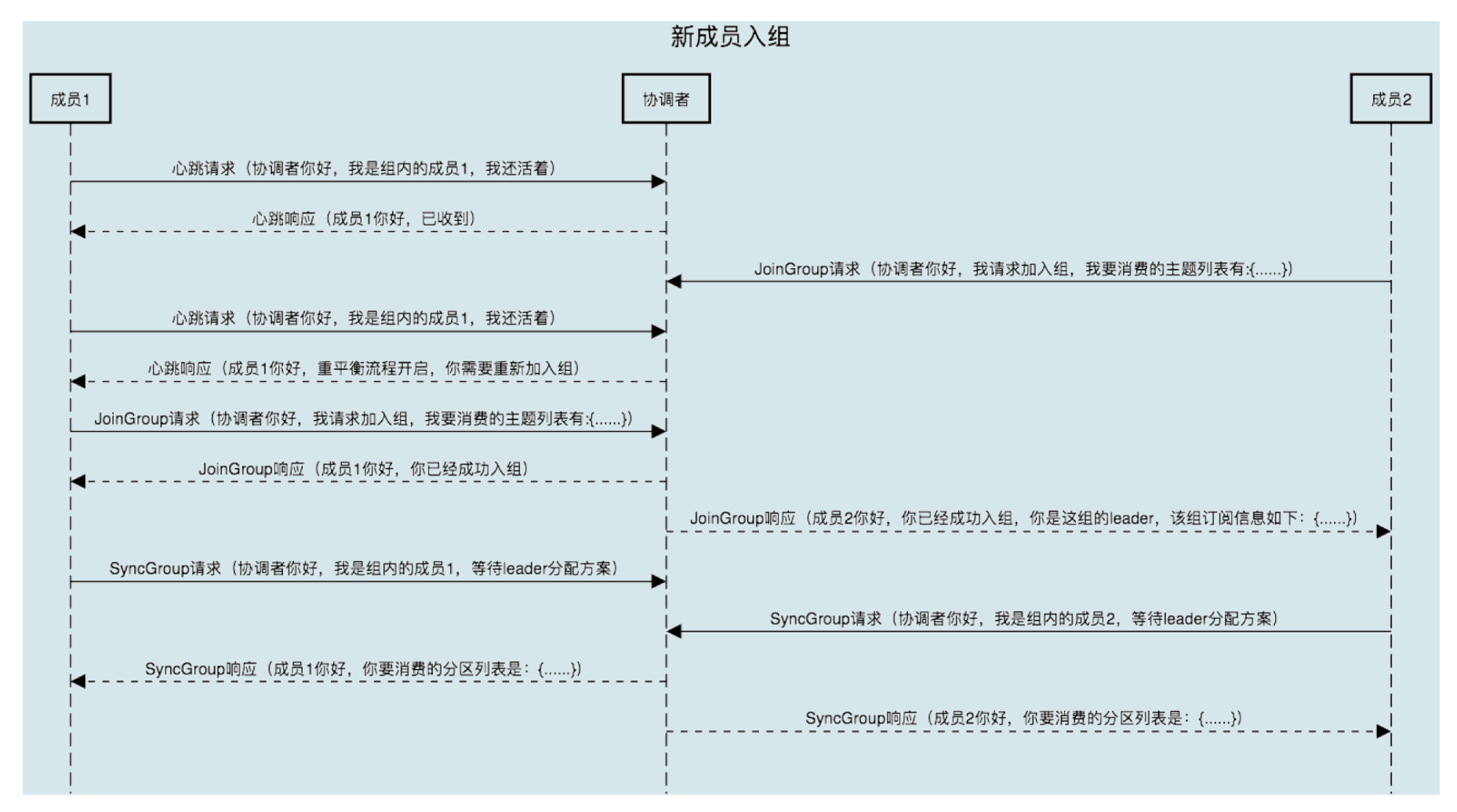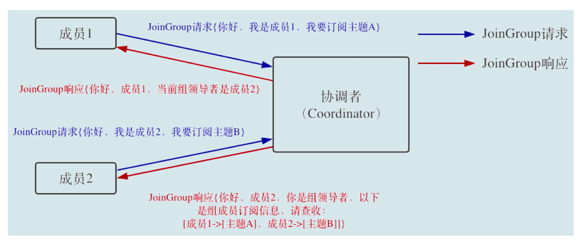 JoinGroup 请求的主要作用是将组成员订阅信息发送给领导者消费者,待领导者制定好分配方案后,重平衡流程进入到 SyncGroup 请求阶段。