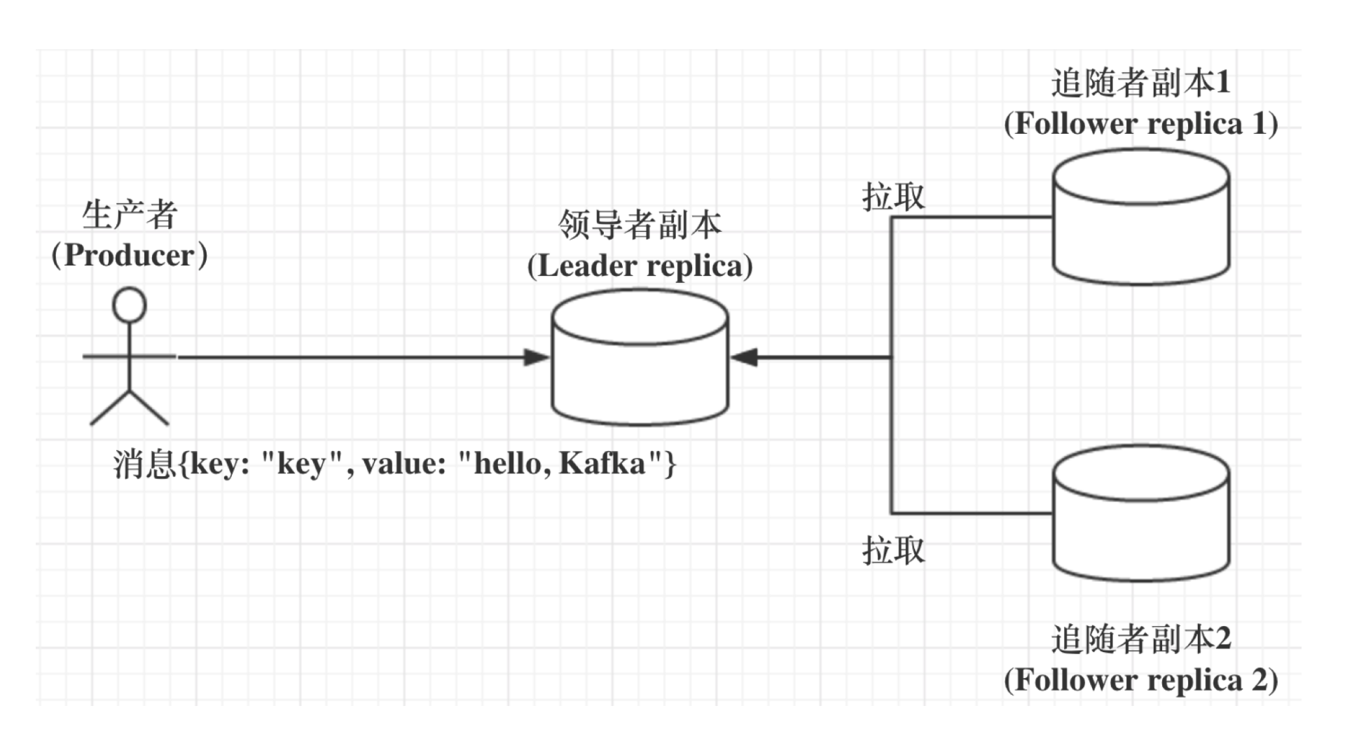 - 在 Kafka 中,副本分成两类:领导者副本(Leader Replica)和追随者副本(Follower Replica)。每个分区在创建时都要选举一个副本,称为领导者副本,其余的副本自动称为追随者副本。